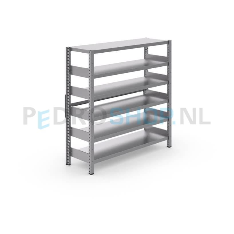 Met de GS-3 metalen stelling voor uw garage, magazijn of showroom kiest u voor een hoogwaardige kwaliteit metalen / ijzeren stellingkast. De GS-3 stijlen, GS-3 dragers, metalen GS-3 legborden en vele accessoires van de GS3 magazijnstelling worden gemaakt van hoogwaardig thermisch verzinkt staal (sendzimir). Kwaliteit gegarandeerd! De standaard onderdelen van de metalen GS3 stellingkasten zijn binnen enkele dagen leverbaar. Stel nu uw metalen magazijn rek stelling samen via onze handige configurator. In een aantal stappen kunt u online uw metalen stellingkast bestellen. Heeft u een groot magazijn in te richten met metalen legbord stellingen? Wij maken graag een passende offerte. Koop uw metalen rekken en stalen stellingen online bij Stellingspecialist.