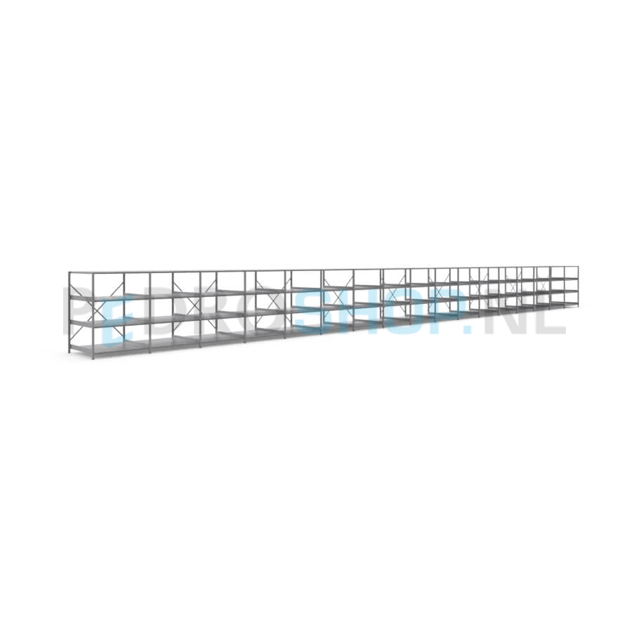 Metalen stellingkast: 140cm (h) x 100cm (d) x 1713.8cm (l)