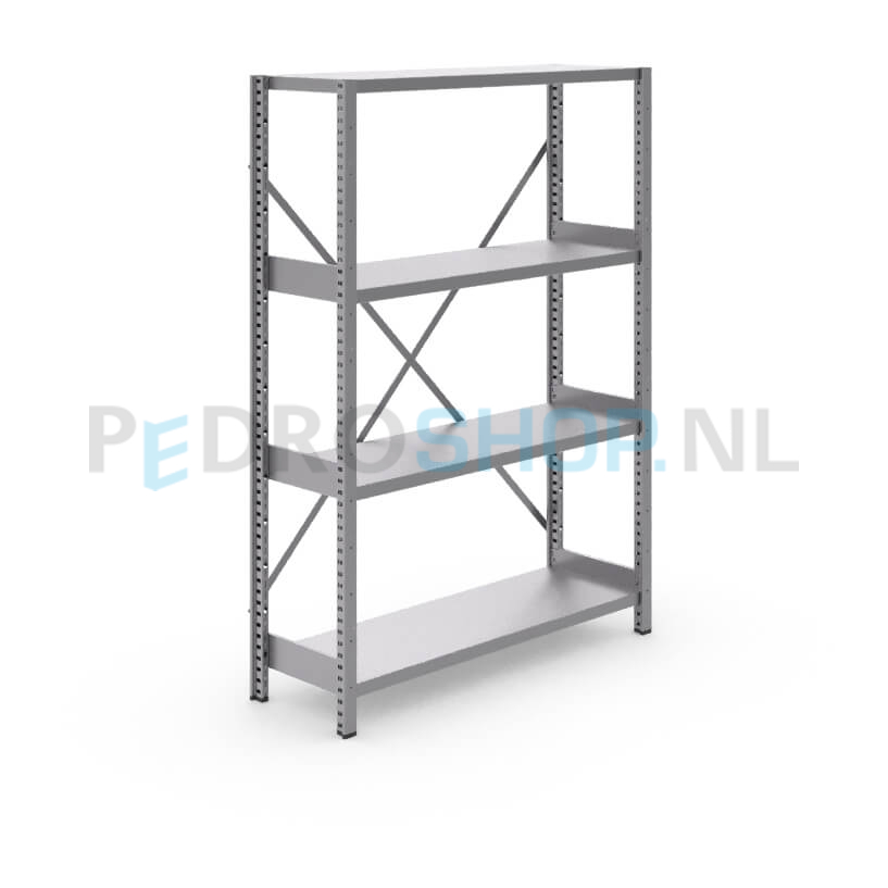 Met de GS-3 metalen stelling voor uw garage, magazijn of showroom kiest u voor een hoogwaardige kwaliteit metalen / ijzeren stellingkast. De GS-3 stijlen, GS-3 dragers, metalen GS-3 legborden en vele accessoires van de GS3 magazijnstelling worden gemaakt van hoogwaardig thermisch verzinkt staal (sendzimir). Kwaliteit gegarandeerd! De standaard onderdelen van de metalen GS3 stellingkasten zijn binnen enkele dagen leverbaar. Stel nu uw metalen magazijn rek stelling samen via onze handige configurator. In een aantal stappen kunt u online uw metalen stellingkast bestellen. Heeft u een groot magazijn in te richten met metalen legbord stellingen? Wij maken graag een passende offerte. Koop uw metalen rekken en stalen stellingen online bij Stellingspecialist.