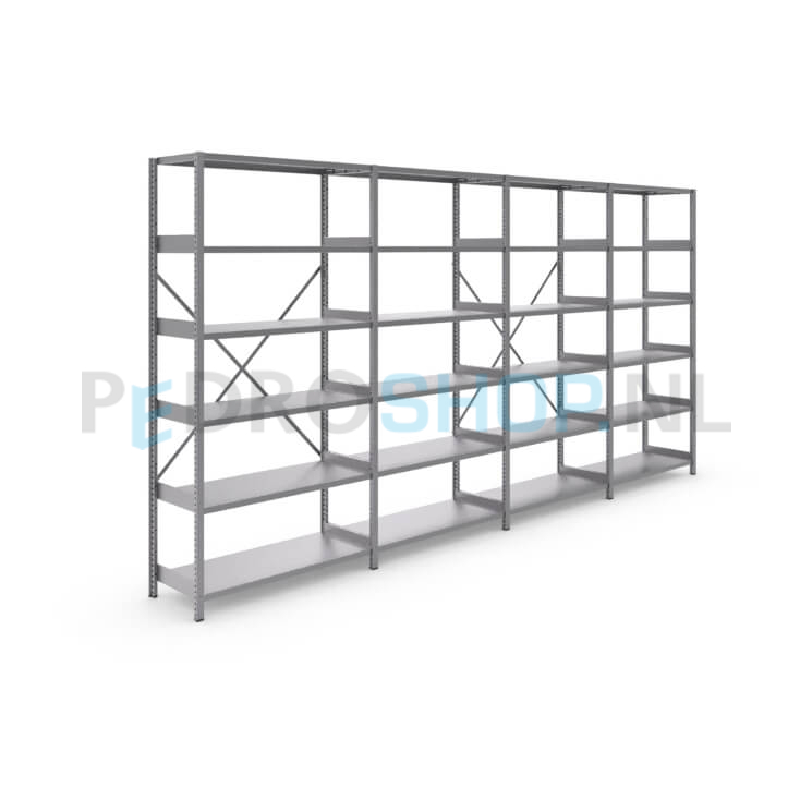 Metalen stellingkast: 200cm (h) x 40cm (d) x 406cm (l)