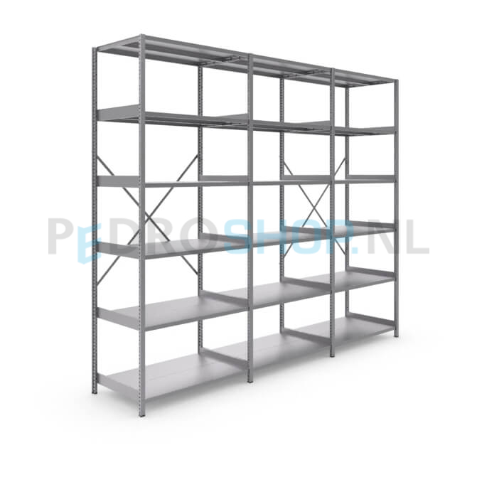 Met de GS-3 metalen stelling voor uw garage, magazijn of showroom kiest u voor een hoogwaardige kwaliteit metalen / ijzeren stellingkast. De GS-3 stijlen, GS-3 dragers, metalen GS-3 legborden en vele accessoires van de GS3 magazijnstelling worden gemaakt van hoogwaardig thermisch verzinkt staal (sendzimir). Kwaliteit gegarandeerd! De standaard onderdelen van de metalen GS3 stellingkasten zijn binnen enkele dagen leverbaar. Stel nu uw metalen magazijn rek stelling samen via onze handige configurator. In een aantal stappen kunt u online uw metalen stellingkast bestellen. Heeft u een groot magazijn in te richten met metalen legbord stellingen? Wij maken graag een passende offerte. Koop uw metalen rekken en stalen stellingen online bij Stellingspecialist.
