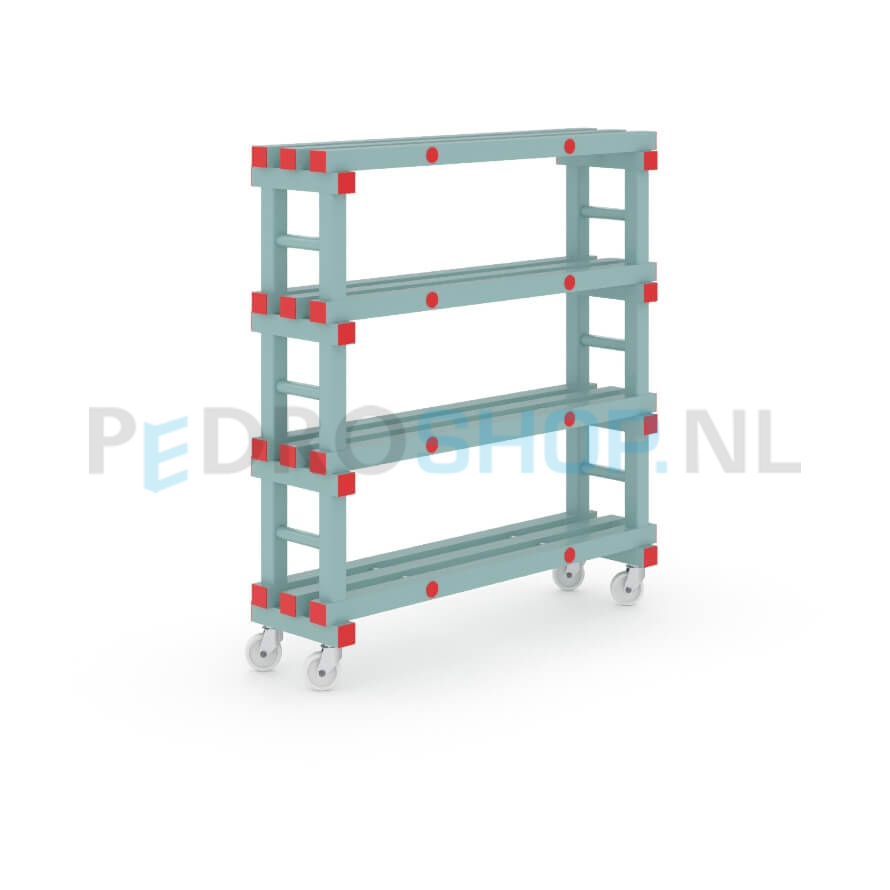 Kunststof stelling: 128cm (h) x 30cm (d) x 120cm (l)