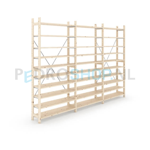 Houten stellingkast Easyrek: 210cm (h) x 30cm (d) x 303cm (l)