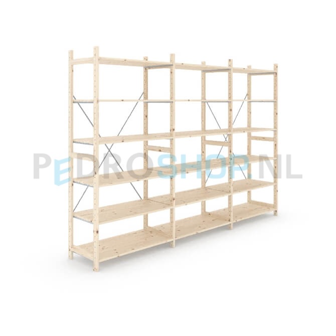 Houten stellingkast Easyrack: 210cm (h) x 50cm (d) x 303cm (l)