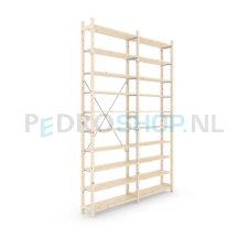 Eigen label houten stellingkast, dus goedkoop, flexibel en snel leverbaar! De onderdelen van de houten stellingen van ons eigen label zijn gemaakt van eersteklas Oost-Europees vurenhout en garanderen daarom jarenlang gebruiksgemak. Met de houten legbordstellingen en houten rekken kunt u uw magazijn eindeloos aanpassen, herinrichten en uitbreiden. U kiest voor betaalbare houten rekken, flexibiliteit met een goede kwaliteit! De houten stellingkast kunt u via onze handige configurator in een aantal stappen online samenstellen. Online uw houten stellingkast bestellen is nog nooit zo makkelijk geweest. Heeft u een groot archief in te richten met houten stellingen? Wij maken graag een passende offerte. Houten stelling kopen? Dan bent u bij ons aan het juiste adres.