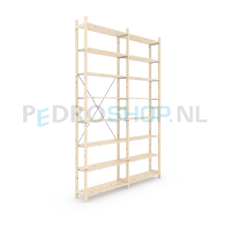 Houten stellingkast Easyrek: 300cm (h) x 30cm (d) x 203cm (l)